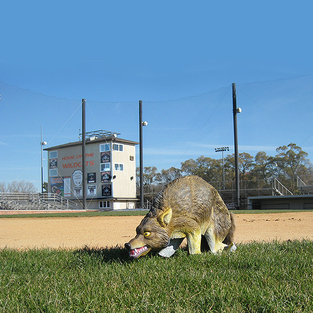 The Bird-X 3D Coyote is a weatherproof, three-dimensional predator decoy built to deter geese, ducks and nuisance birds from lawns, ponds and open recreational areas. It recreates a stalking coyote posture and includes a movable furry tail and stake for ground mounting — a simple, low-effort tool for humane bird control.